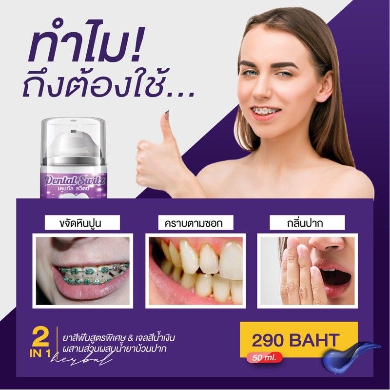 (1 แถม 1) ยาสีฟัน Dental switz เจลฟอกฟันขาว tukta_640 ThaiPick